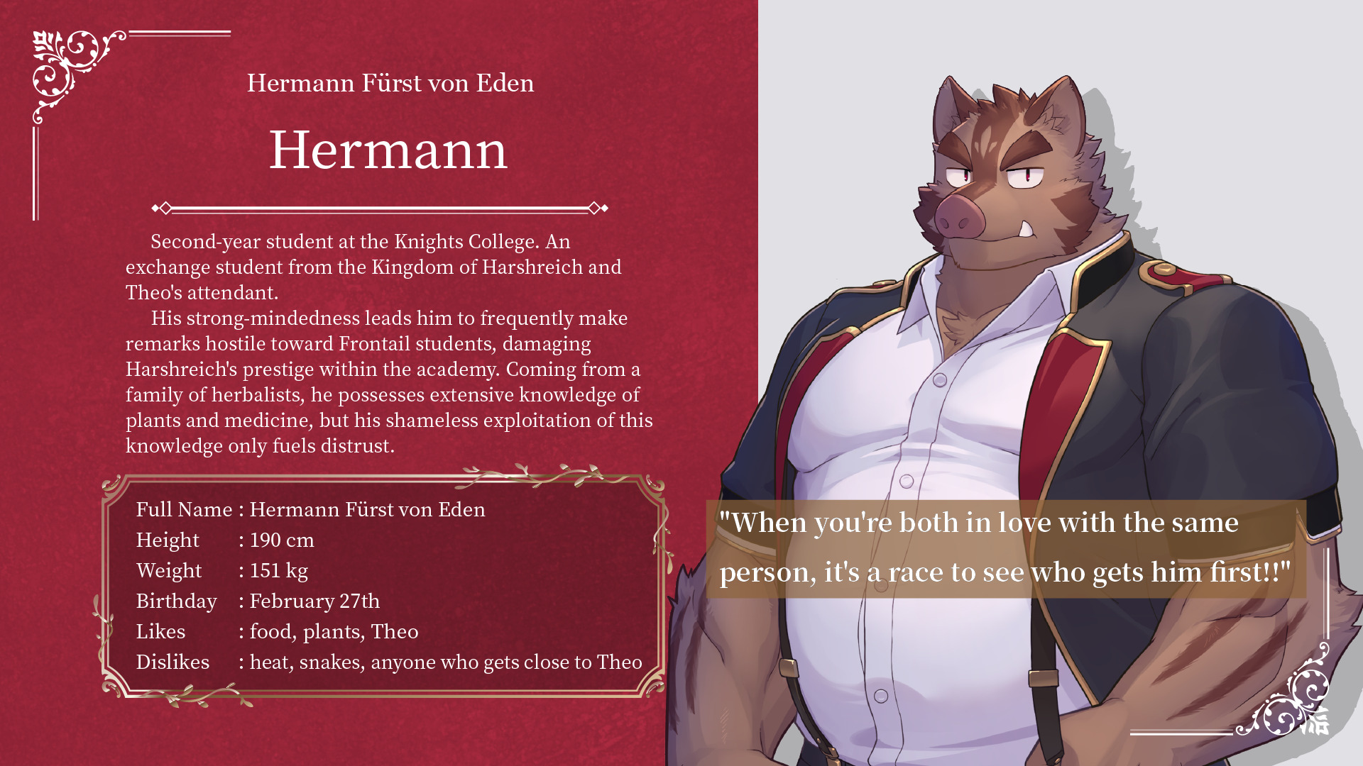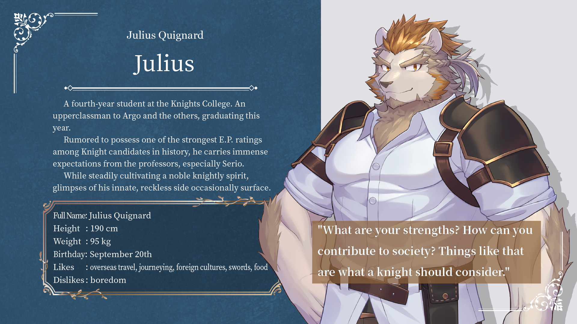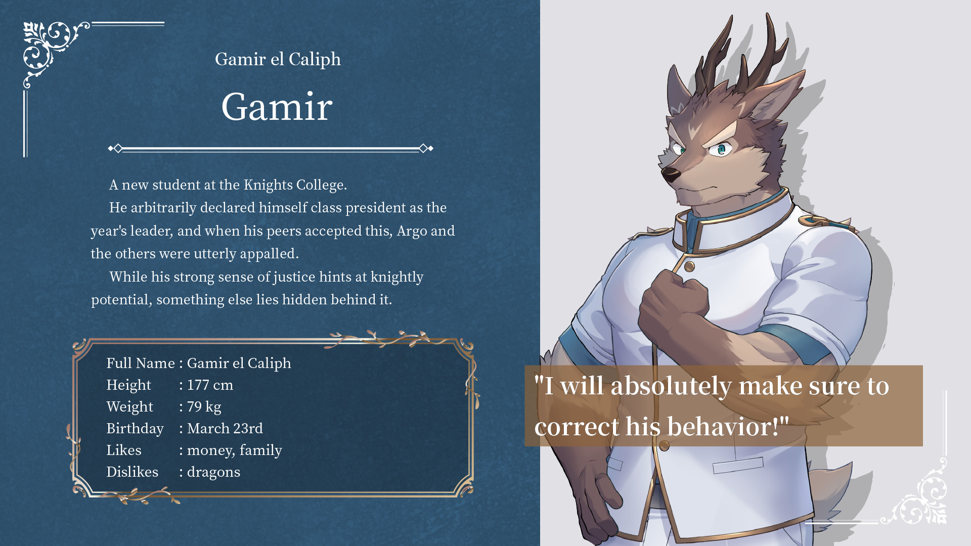 Knights College 2 is a PC visual novel set in a “Knights College” where elite knight cadets live and train.